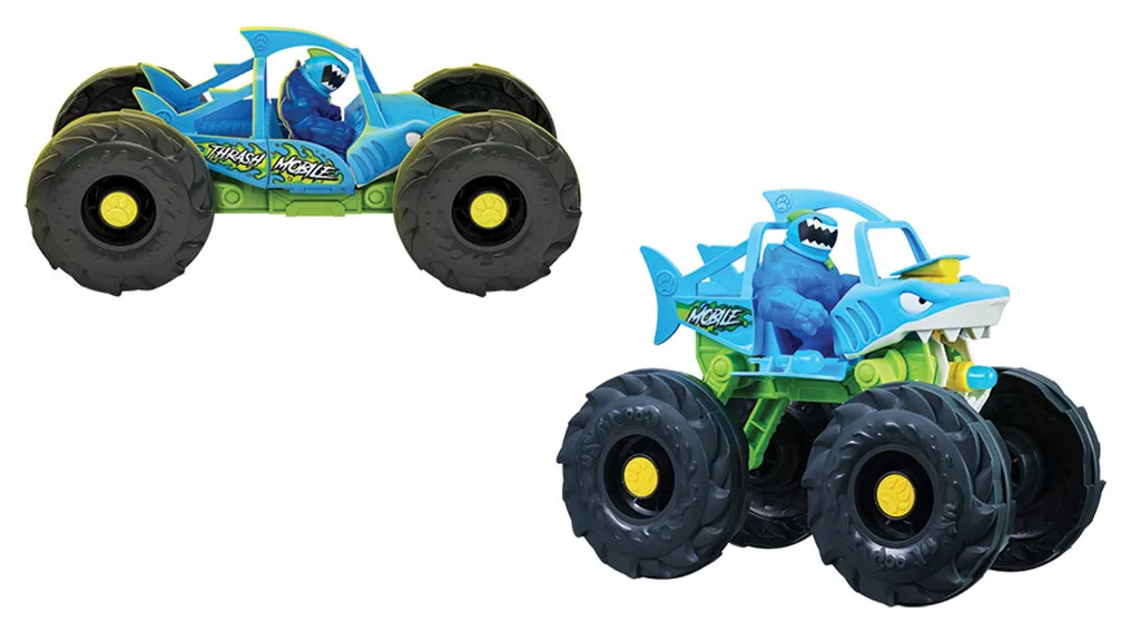 Deti môžu premeniť toto vozidlo Goo Jit Zu z rýchlo jazdiaceho vozidla na útočné monštrum kamión, ak stlačia alebo natiahnu plutvu. Vozidlo pojme tri postavy a obsahuje exkluzívnu figúrku Thrash.