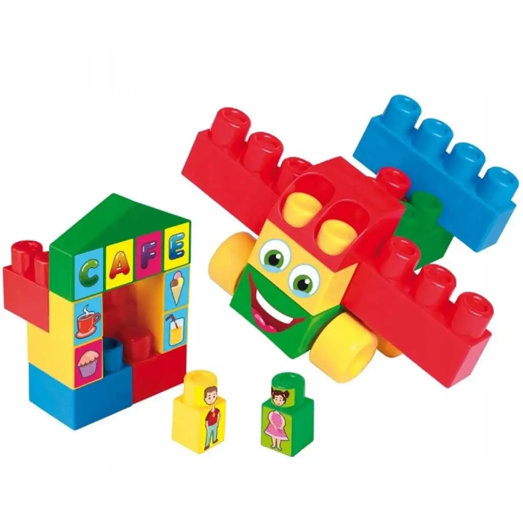 Spoznajte súpravu veľkých stavebných kociek Wader Big Blocks s 26 kusmi, ktorá čaká na vaše dieťa s modrými, červenými a žltými kúskami, aby sa jeho kreativita mohla rozvinúť! Tieto veľké, ľahko uchopiteľné kocky boli špeciálne navrhnuté pre rodiny s malými deťmi, aby aj tie najmenšie mohli bezpečne a ľahko stavať. Živé farby v súprave nielenže upútajú pozornosť detí, ale tiež im pomáhajú pri učení sa farieb. Medzi kockami možno stavať aj figúrky a vozidlá, čo ďalej rozširuje možnosti hry. Používanie stavebných kociek rozvíja jemnú motoriku, priestorovú orientáciu a schopnosť riešiť problémy.