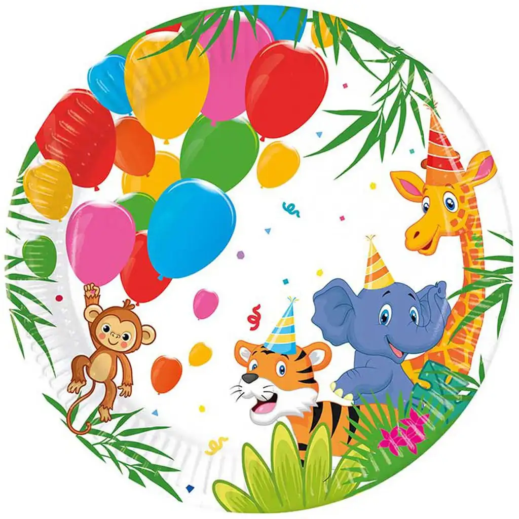 Veselé džungľové papierové taniere, sada 8 ks, 20 cm