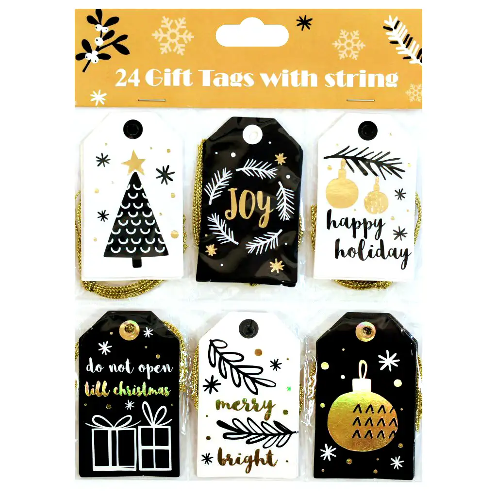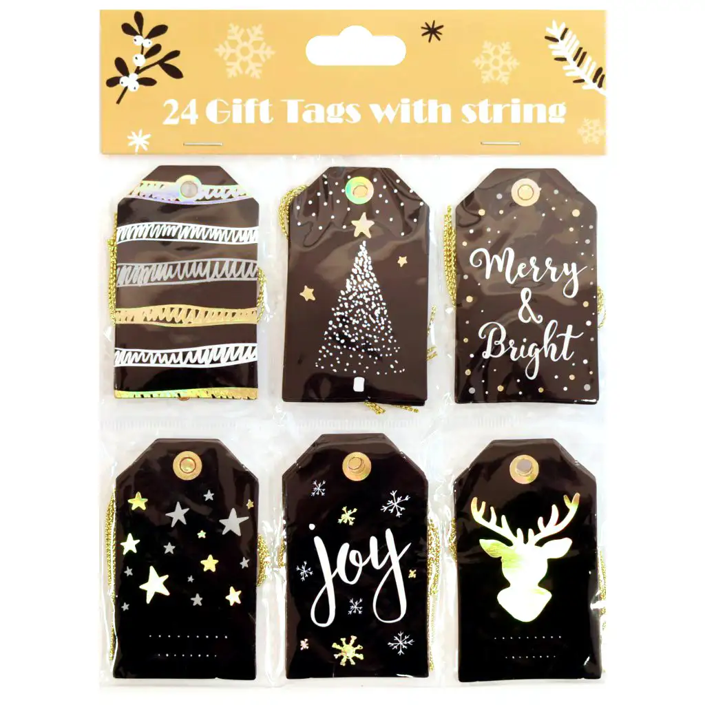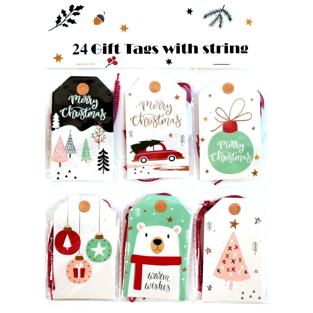 Každý set obsahuje 24 unikátnych darčekových štítkov, každý vybavený malým závesom. Tak každý darček môže dostať jedinečné označenie, či už je to osobná správa alebo meno darujúceho a obdarovaného. Štítky nie sú len praktické, ale tiež oživia balenie darčekov a prispievajú k vytvoreniu vianočnej atmosféry.