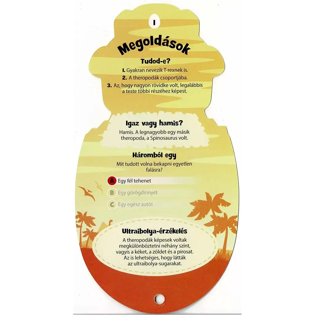 Svet dinosaurov takmer magicky priťahuje deti – tieto pradávne, tajomné tvory fascinujú malých objaviteľov nielen svojou veľkosťou, ale aj svojou históriou. Kartová sada Vieš odpoveď? – Dinosaury je určená práve zvedavým fanúšikom dinosaurov, ktorí sa chcú dozvedieť viac o obyvateľoch Zeme spred stoviek miliónov rokov. Táto didaktická kartová hra predstavuje 46 rôznych dinosaurov a prehistorických živočíchov zábavným spôsobom, doplnených otázkami, zaujímavými úlohami a prekvapujúcimi faktami.