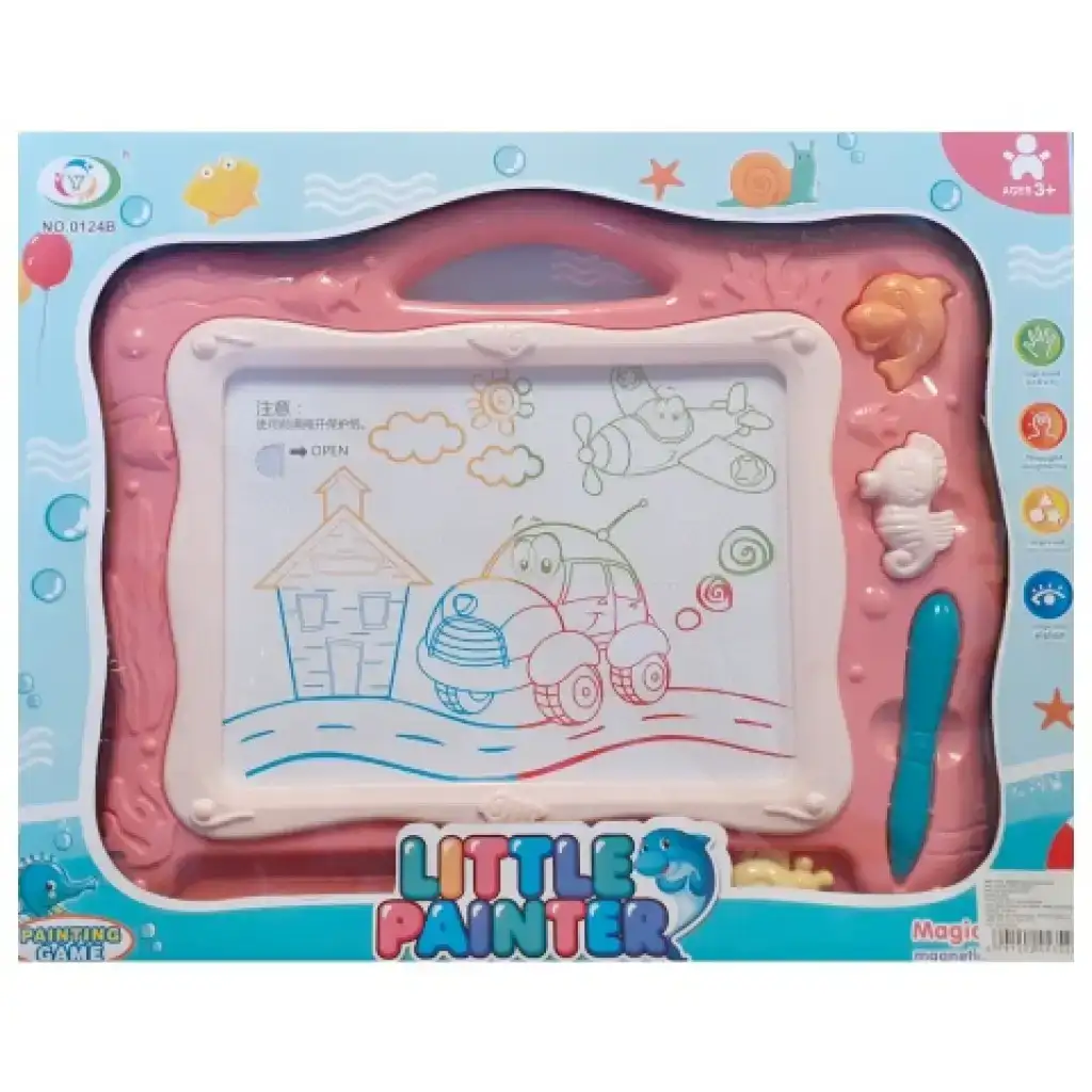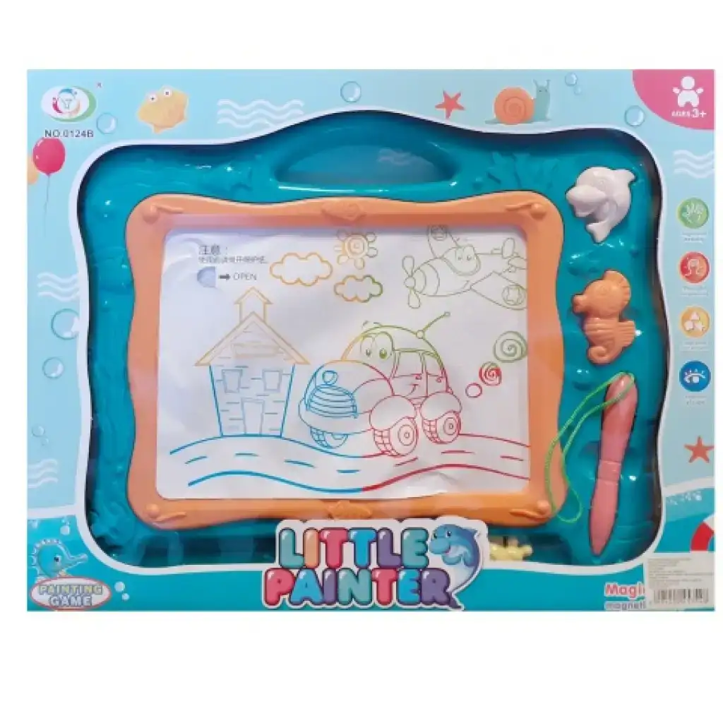 Táto magnetická kresliaca tabuľa bude skutočnou radosťou pre malé deti, keďže jej rám aj celá téma sú inšpirované osviežujúcim svetom vody. V ráme tabuľky je miesto pre pero, ktoré je navrhnuté špeciálne pre malé detské ruky, vďaka čomu sa im drží pohodlne. Kresbu vytvorenú na tabuľke možno jedným ťahom vymazať, a to pomocou posuvného tlačidla pod obrázkom. Deti môžu svoje dielo doplniť aj odtlačkami s motívom delfína a morského koníka. Uvedená cena platí pre jednu farebnú variantu, vybranú farbu prosím uveďte v poznámke pri zadávaní objednávky.