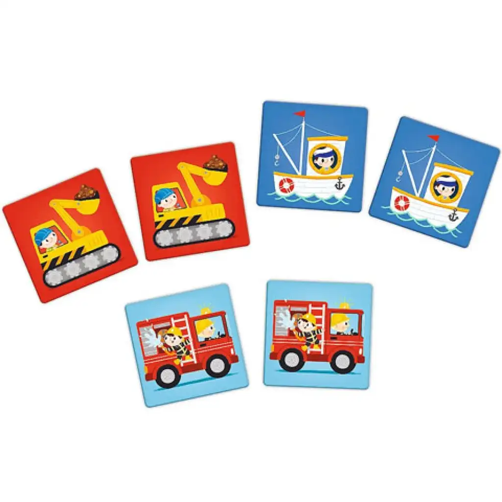 Táto hra je vynikajúcou voľbou pre dvojročné deti z každého hľadiska, pretože najprv sa môžu zoznámiť s rôznymi vozidlami, potom si môžu precvičiť rozpoznávanie párov a nakoniec ju môžu hrať ako pamäťovú hru. Stačí dôkladne premiešať kartičky obrátené obrázkom nadol, ktoré sú pekne usporiadané na stole. Potom začínajúci hráč otočí dve karty a všetci si zapamätajú, čo bolo na obrázku, predtým než sa karty otočia späť. Potom je na rade ďalší hráč. Ak hráč úspešne nájde pár, získa ho a môže skúsiť znova. Víťazom sa stane ten, kto má na konci najviac párov.