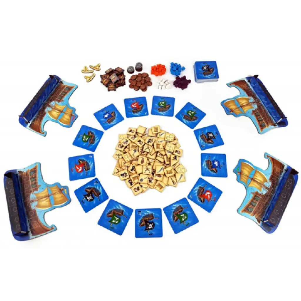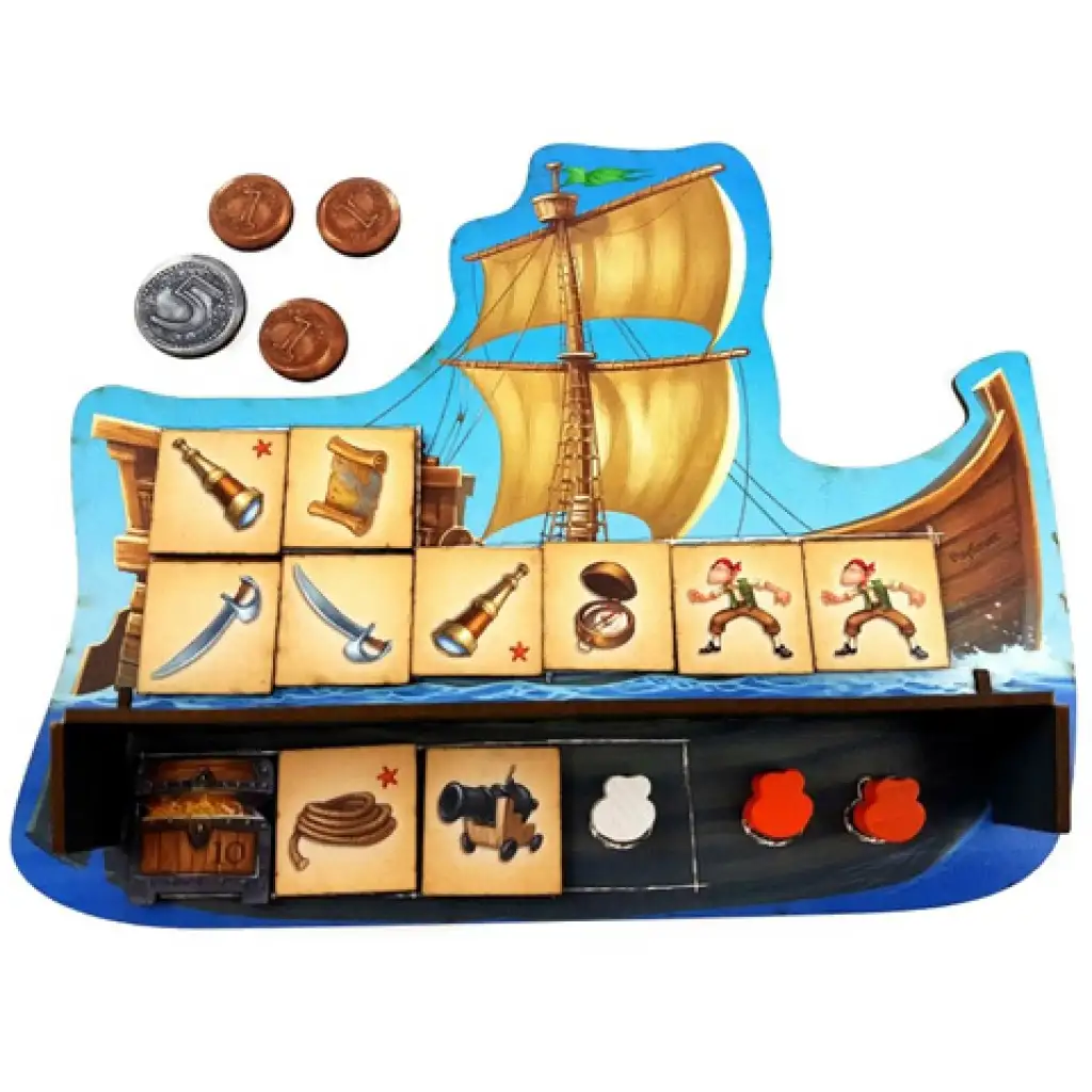 Musíš čo najrýchlejšie naplniť nákladný priestor lode, pretože čoskoro sa musíš vydať na dobrodružstvá a ostatní piráti sa tiež pripravujú, aby ťa predbehli, či už v boji alebo v obchode. Hra Alles an Bord je rozdelená na dve samostatné časti. V prvej musíš súťažiť s ostatnými a rýchlo získať náklad zo stredu, aby si v druhej fáze, počas dobrodružstva, mal dostatok a vhodný náklad nahromadený v útrobách lode, ktorý môžeš použiť na objavovanie alebo ich vymeniť. Ak je to potrebné, môžeš bojovať a uzatvárať zmluvy s protivníkmi, ale srdce pirátov vždy bije pre to isté, a to je získanie morských pokladov a bohatstva.