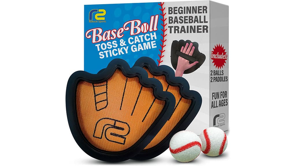 Táto sada lopty a rukavíc poskytuje špeciálny, lepkavý úchop – obe časti sú pokryté suchým zipsom. Nepremokavá baseballová rukavica je inšpirovaná pálkami, ktoré sú nastaviteľné pre všetky veľkosti rúk, takže ju môžu používať deti aj dospelí. Sada je kompletná, obsahuje aj dve lopty, takže hra môže začať okamžite. Táto sada je ideálna na hranie vonku aj v interiéri, rozvíja reflexy a koordináciu, pričom poskytuje zábavu celej rodine.