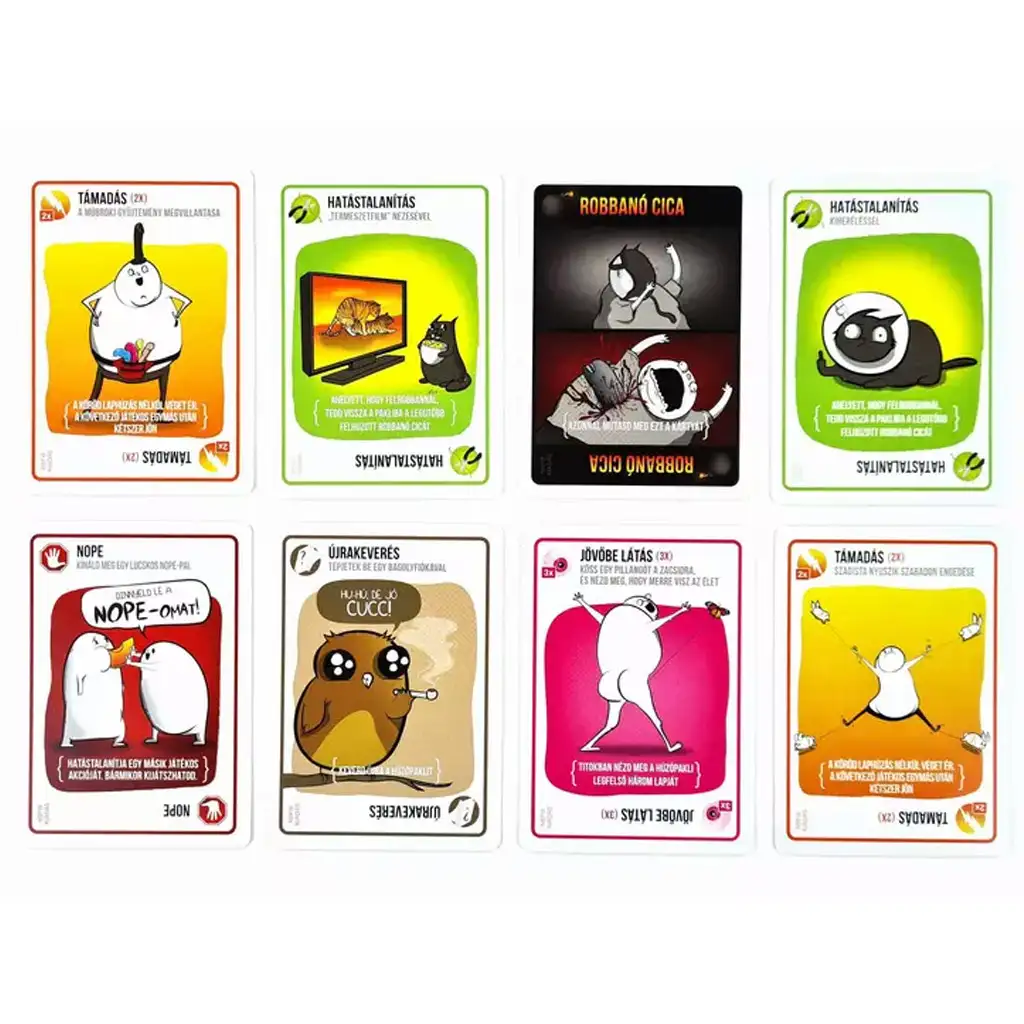 Explodujúce mačky: NSFW edícia je úžasná párty hra, ktorá s explodujúcimi mačkami a dospeláckym štýlom zaručuje neviazaný smiech! Táto extrémna spoločenská hra ponúka rýchly a zábavný zážitok, kde sa hráči snažia za každú cenu vyhnúť tomu, aby si z balíčka vytiahli kartu explodujúcej mačky.