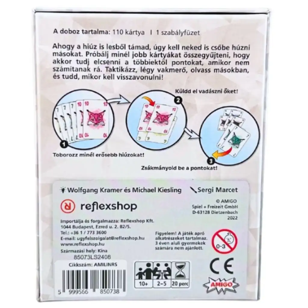 Vytiahni rysa! je zábavná, dynamická kartová hra, v ktorej je stratégia a krádež v centre pozornosti! Cieľom je zhromaždiť čo najviac kariet pred sebou, pretože tie prinášajú body. Buď však ostražitý, pretože ostatní ti môžu kedykoľvek ukradnúť tieto karty a dokonca aj tvoje body! Vďaka jednoduchým pravidlám sa hra ľahko učí, ale kvôli neustálemu súpereniu zostáva vždy vzrušujúca. Hraj svoje karty múdro, kradni šikovne a získaj toľko bodov, aby si sa stal víťazom. Perfektná voľba na rodinné popoludnia a stretnutia s priateľmi!