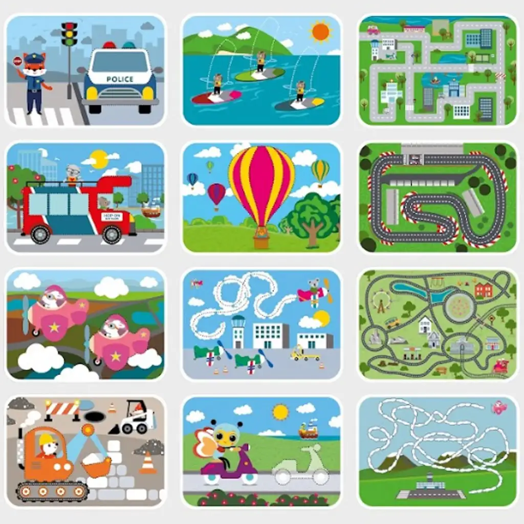 Vďaka odolnému, mazateľnému povrchu je hra kedykoľvek znovu použiteľná a navyše ľahko prenosná, takže je praktickým spoločníkom aj na cestách. Ideálna voľba na doma, do škôlky alebo na dlhšiu cestu autom, pretože deti sa učia hrou. Karty zabezpečujú, že deti trávia čas kreatívne a aktívne, pričom sa nepozorovane rozvíjajú.