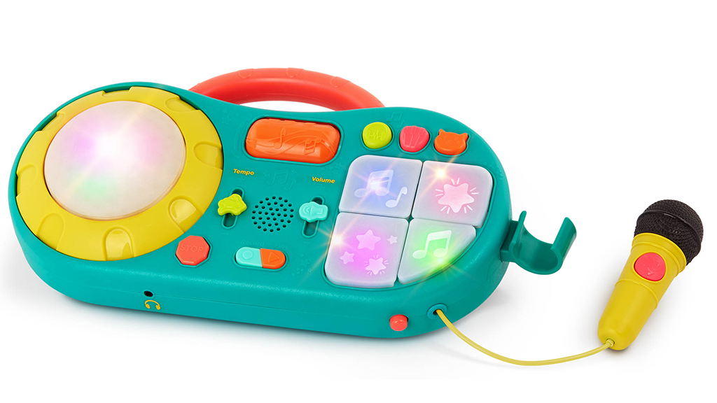 S týmto ľahko použiteľným DJ mixérom si môžeš vybrať medzi klasickými zvukmi, techno beatmi a priateľskými mňaukaniami; roztoč gramofón, aby si vytvoril škrabance; a použi zasúvateľný mikrofón na nahrávanie vokálov. Okrem toho obsahuje svietiaci bubnový pad a 12 zábavných zvukových tlačidiel.
