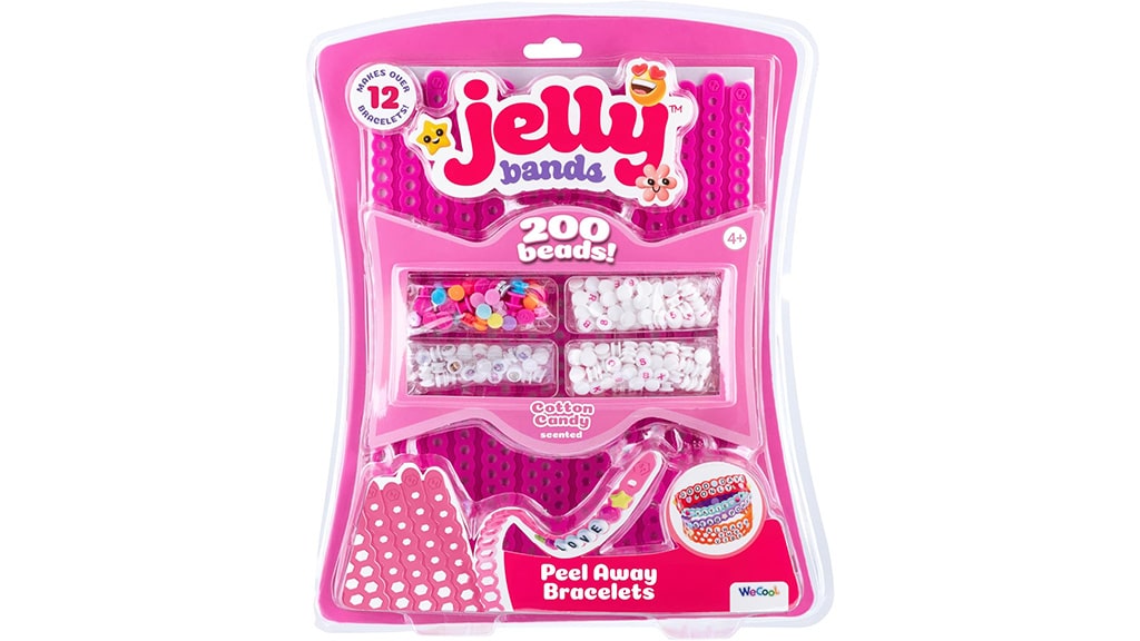 WeCool Jelly Bands produkty premenia kreatívne ručné práce na skutočný módny hit! Jelly Bands sú voňavé náramky, ktoré si deti môžu vyrobiť vlastnoručne, nekonečne ich kombinovať a prispôsobovať podľa vlastnej fantázie. Každá sada obsahuje 12 stiahnuteľných náramkov a 200 farebných príveskov a korálok, s ktorými si môžu vytvoriť jedinečné šperky. Také vône ako modrá malina, cukrová vata, pomarančový krém, kokos a mnoho ďalších robia každý náramok výnimočným zmyslovým zážitkom. Deti od 4 rokov môžu náramky vrstviť, miešať, kombinovať, vymieňať a zbierať, takže každý si môže vytvoriť svoj vlastný magický príbeh s príveskami. Táto hračka rozvíja nielen kreativitu, ale aj jemnú motoriku a sociálne zručnosti, zatiaľ čo deti spolu hrajú a tvoria.