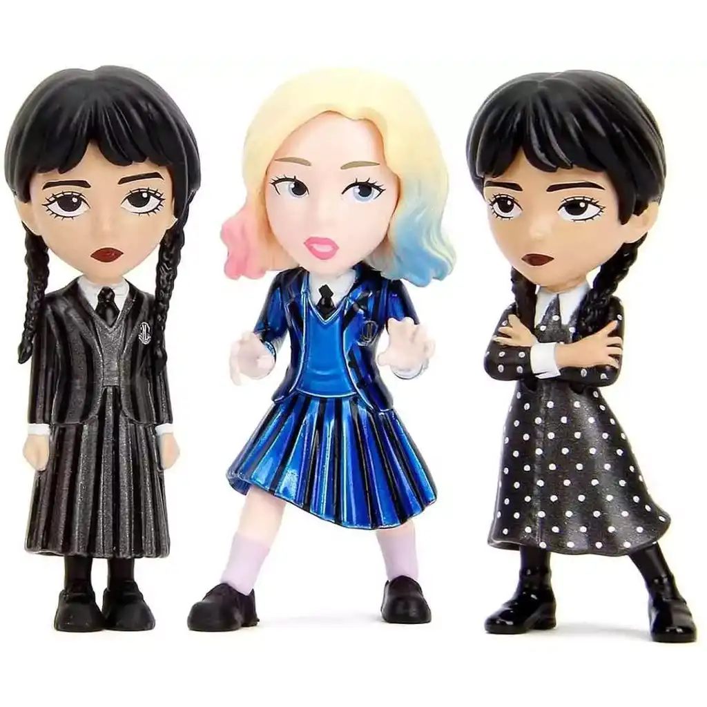 Medzi zberateľskými minifigúrkami nájdete Wednesday v rôznych oblečeniach, ako aj jej priateľov, napríklad Enid. Balenie môže obsahovať aj jedinečné malé predmety – napríklad písací stroj, havrana, svietnik, knihu alebo známe „Thing“ ruku. Tieto detailné doplnky ešte viac zvyšujú herný zážitok a umožňujú kreatívnu hru na role.