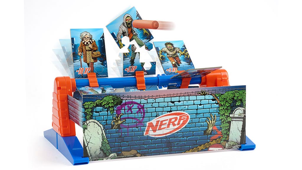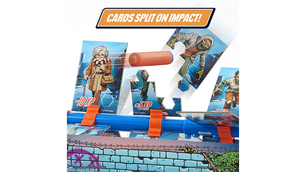 Potom musia trafiť Zombie karty na rotujúcom ráme pomocou NERF nábojov a vystreľovačov. Karty sa pri zásahu ľahko rozpadnú, takže hra je jednoduchá, skóre sa dá rýchlo sledovať a je ľahké začať hru odznova.