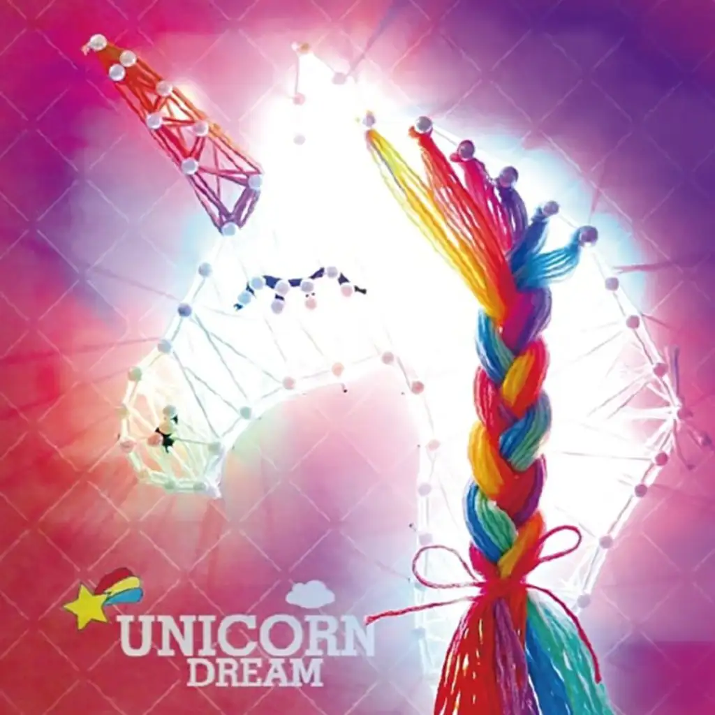 Súprava obsahuje všetky potrebné pomôcky: zadnú dosku, rôznofarebné nite, ihly a samozrejme LED svetelný zdroj, ktorý môžete ľahko zapnúť cez USB. Počas tvorby deti hravo rozvíjajú svoje jemné motorické zručnosti, zatiaľ čo formujú nádherného, farebného jednorožca z nití. Konečný výsledok nie je len umelecké dielo, ale aj svietiaci jednorožec sen, ktorý večer poskytuje príjemné osvetlenie.