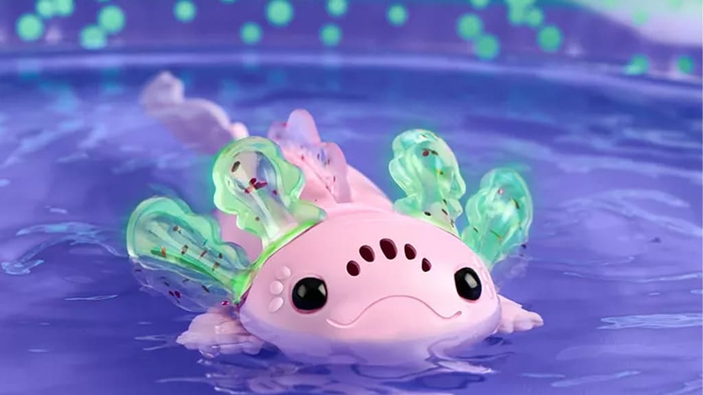 Ak deti pohladia hlavu (a aktivujú senzor na bruchu tým, že ho držia), axolotl rôznymi farbami signalizuje náladu dieťaťa. K dispozícii je aj farebný-náladový sprievodca — modrá je ospalá, fialová šťastná, zelená bláznivá a tak ďalej. Keď deti pohladia len hlavu bez dotyku senzora na bruchu, malý axolotl zaspieva pieseň. Hračka sa dokáže pohybovať vo vode aj v nafukovacom bazéne.Bábätká axolotla Fingerlings sú neuveriteľne roztomilé a reaktívne, takže deti môžu mať pocit, akoby mali skutočného domáceho miláčika – bez neporiadku! Deti vo veku 5 rokov a staršie sa môžu naučiť, ako sa podeliť a striedať sa v hladkaní hračky, sledovať pohyby chvosta, počúvať zvuky a objavovať, v akej nálade je axolotl. Rodiny môžu interagovať s hračkou, keď sa pohybuje v bazéne, alebo sa starať o svojho priateľa bez toho, aby museli pridávať bazén plný vody do času na hranie.