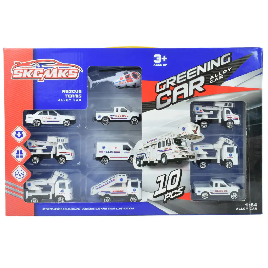 V tomto fantastickom sete nájdete celkovo 10 rôznych vozidiel, každé z nich je vynikajúco vhodné pre záchranárske situácie vo vašom detskom hracím kráľovstve. Sada obsahuje najpotrebnejšie typy vozidiel, takže vaše dieťa má všetky nástroje, ktoré potrebuje na zábavné a kreatívne záchranárske akcie.