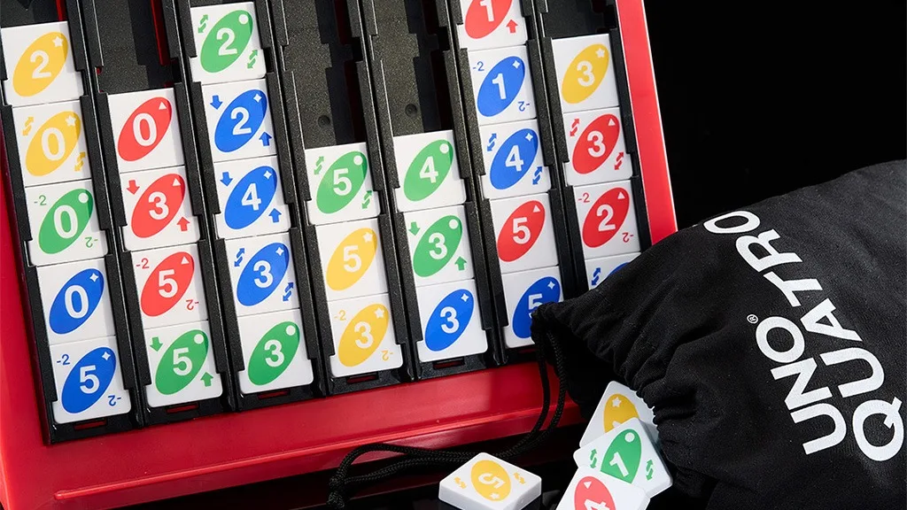 UNO Quatro má skutočný potenciál stať sa najnovším doplnkom rodinných herných večerov.Táto hra kombinuje výzvu párovania farieb alebo čísel s tým, že musíte dosiahnuť štvoricu v rade. Hráči striedavo vsúvajú svoje dlaždice do jednej zo siedmich táck, zatiaľ čo akčné dlaždice zvyšujú výzvu.