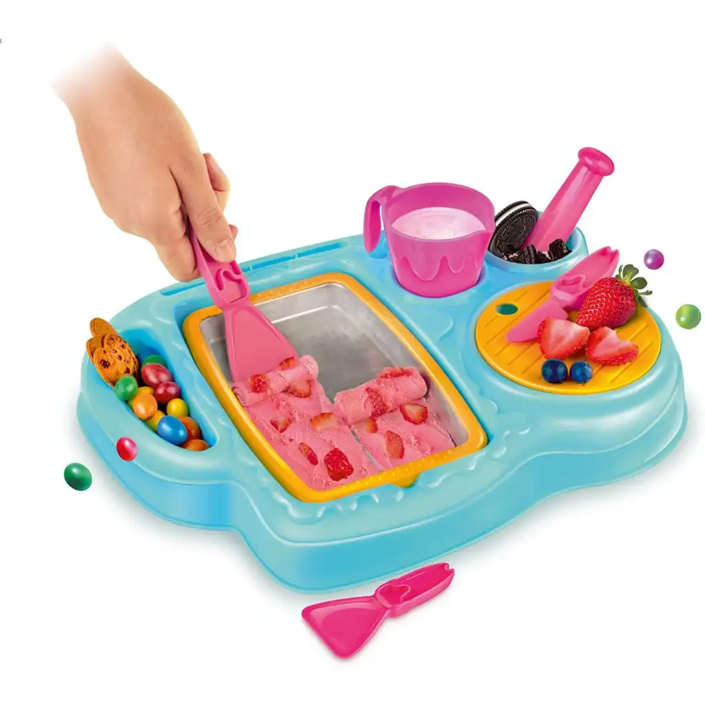 Hra nielenže podporuje kreativitu, ale poskytuje aj skvelú zábavu, zatiaľ čo deti si môžu vyskúšať byť malými šéfkuchármi. Na prevádzku Zmrzlinového laboratória nie sú potrebné batérie – stačí zmraziť kovový podnos na pár hodín a kúzlo môže začať! Ideálna kuchynská hračka na doma alebo ako hlavná atrakcia narodeninovej oslavy. Zážitok je nielen chutný, ale aj vzdelávací, pretože deti sa hravou formou zoznámia so základmi výroby zmrzliny.