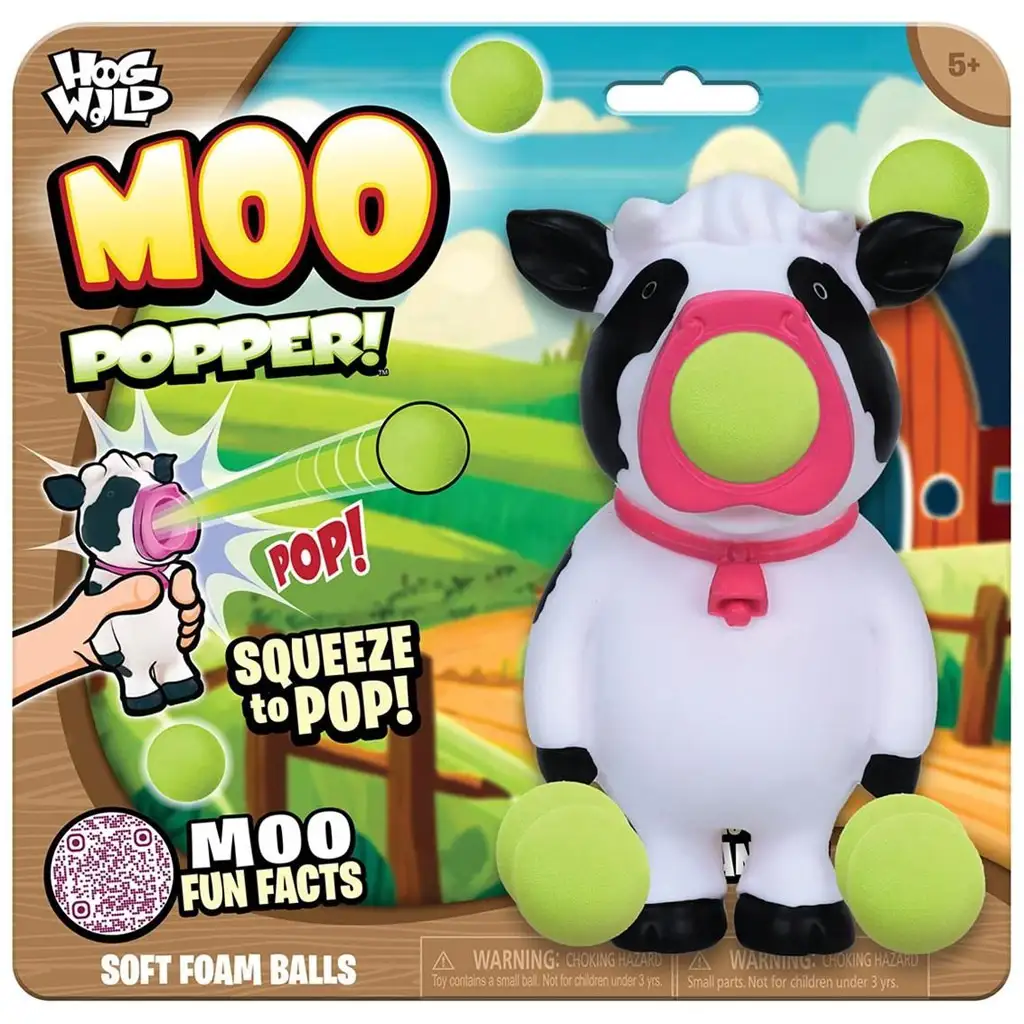 Perfektný darčekový nápad na narodeniny, veľkonočné prekvapenie alebo len tak, aby sa do detskej izby nasťahovala trochu farmárskej atmosféry. Múúú-Vystreľujúca Kravička Popper zaručene vyčarí úsmev na tvárach všetkých vekových kategórií!