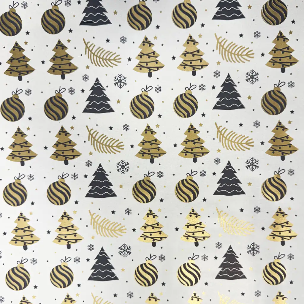 Ak skutočne hľadáš elegantné a sofistikované balenie na Vianoce, baliaci papier „Golden Elegance“ je tou ideálnou voľbou. Harmonické striedanie zlatej a čiernej farby, jednoduché vianočné stromčeky, trblietavé gule, vetvičky a snehové vločky tvoria vzor, ktorý je moderný aj klasický zároveň. Zlaté prvky na bielom podklade dodávajú každému darčeku skutočne prémiový vzhľad.