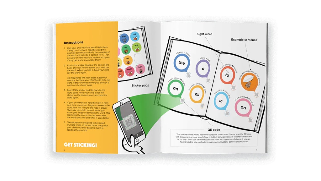 Tieto knižky s nálepkami hravou formou a opakovane použiteľnými nálepkami pomáhajú rozvíjať plynulosť čítania. Pri každom slove sa nachádza QR kód, ktorý po naskenovaní poskytne návod na výslovnosť. Sticker Book séria je obzvlášť obľúbená medzi deťmi, pretože učenie sa stáva zážitkom a vďaka nálepkám si ľahšie zapamätajú slová a ich správnu výslovnosť. Knihy interaktívnym spôsobom motivujú deti k samostatnému učeniu, pričom rozvíjajú ich slovnú zásobu a jazykové zručnosti.