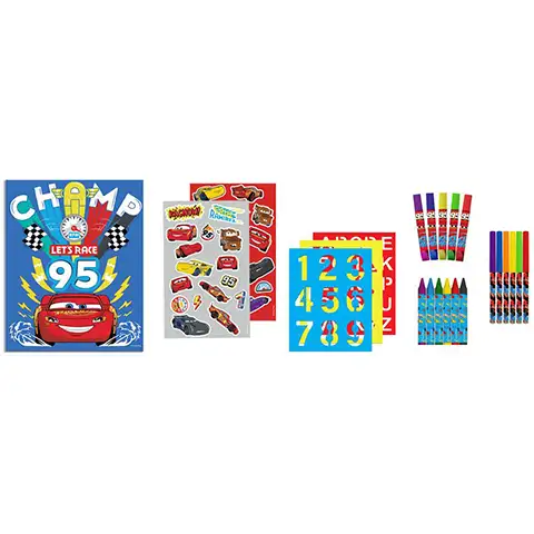 Malí chlapci určite s radosťou začínajú s kreatívnym vytváraním pomocou tejto sady, pretože každý nástroj v tejto súprave je zdobený cool vozidlami z rozprávky Autá. V tomto balení nájdete všetko, čo potrebujete na nakreslenie najlepších scén z rozprávky. Súčasťou balenia je omaľovánka a nálepky, tri šablóny, pomocou ktorých môžu deti nakresliť písmená a čísla. Nakoniec ale v neposlednom rade sú v sade aj voskovky, fixky a sľudové lepidlá.