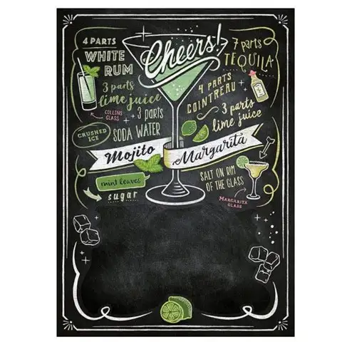 Teraz sme pre vás alebo pre deti priniesli výnimočné puzzle, ktoré oživuje atmosféru skutočného baru. Puzzle zobrazuje 50 x 69 cm veľký obraz, ktorý dostal čiernu základnú farbu a pripomína čierne tabule, ktoré sa používajú v baroch a reštauráciách. Na tabuli je viditeľné Mojito v koktejlovom pohári a rôzne názvy nápojov. Puzzle sa skladá z tisíc kusov puzzle dielikov, vďaka čomu zostavenie puzzle obrazu si bude vyžadovať trpezlivosť, ale konečný výsledok stojí za to, pretože na hotový obraz je možné písať kriedou.