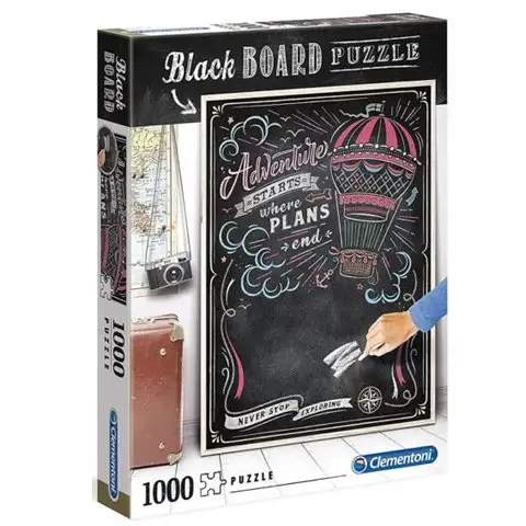 Čierne tabule dávajú veľmi retro dojem a zvyčajne sa používajú v kaviarňach, baroch a dokonca aj v reštauráciách, pretože ich možno znova a znova použiť. Teraz sme priniesli čiernu tabuľu Journey, ktorá má veľmi pekný vzhľad, so vzorom teplovzdušného balóna a nápismi. Obraz teraz prichádza v tvare 1000-dielnej skladačky, ktorá určite poteší deti, pretože vďaka ploche na tabuľu môžu písať aj deti. Zostavenie puzzle obrazu si bude vyžadovať veľa trpezlivosti, ale určite to stojí za to, pretože konečný výsledok bude vynikajúci.