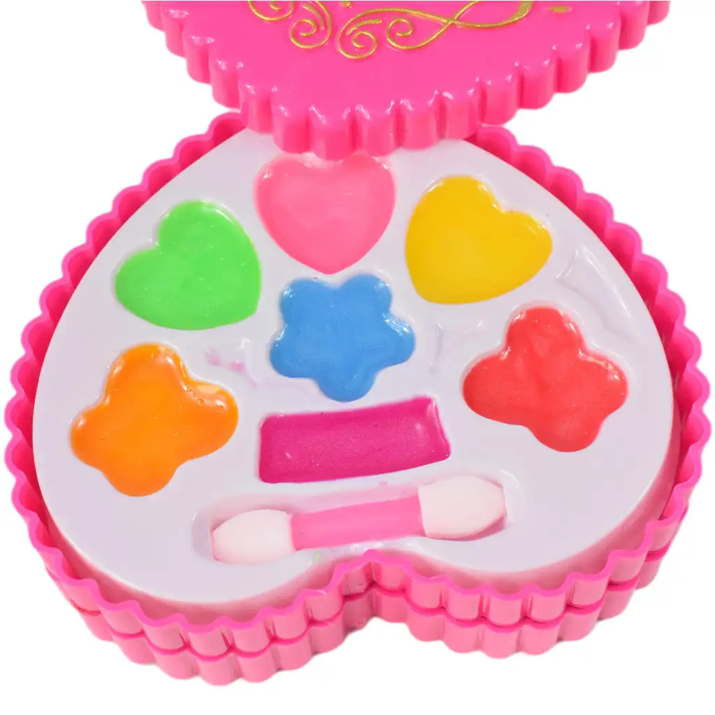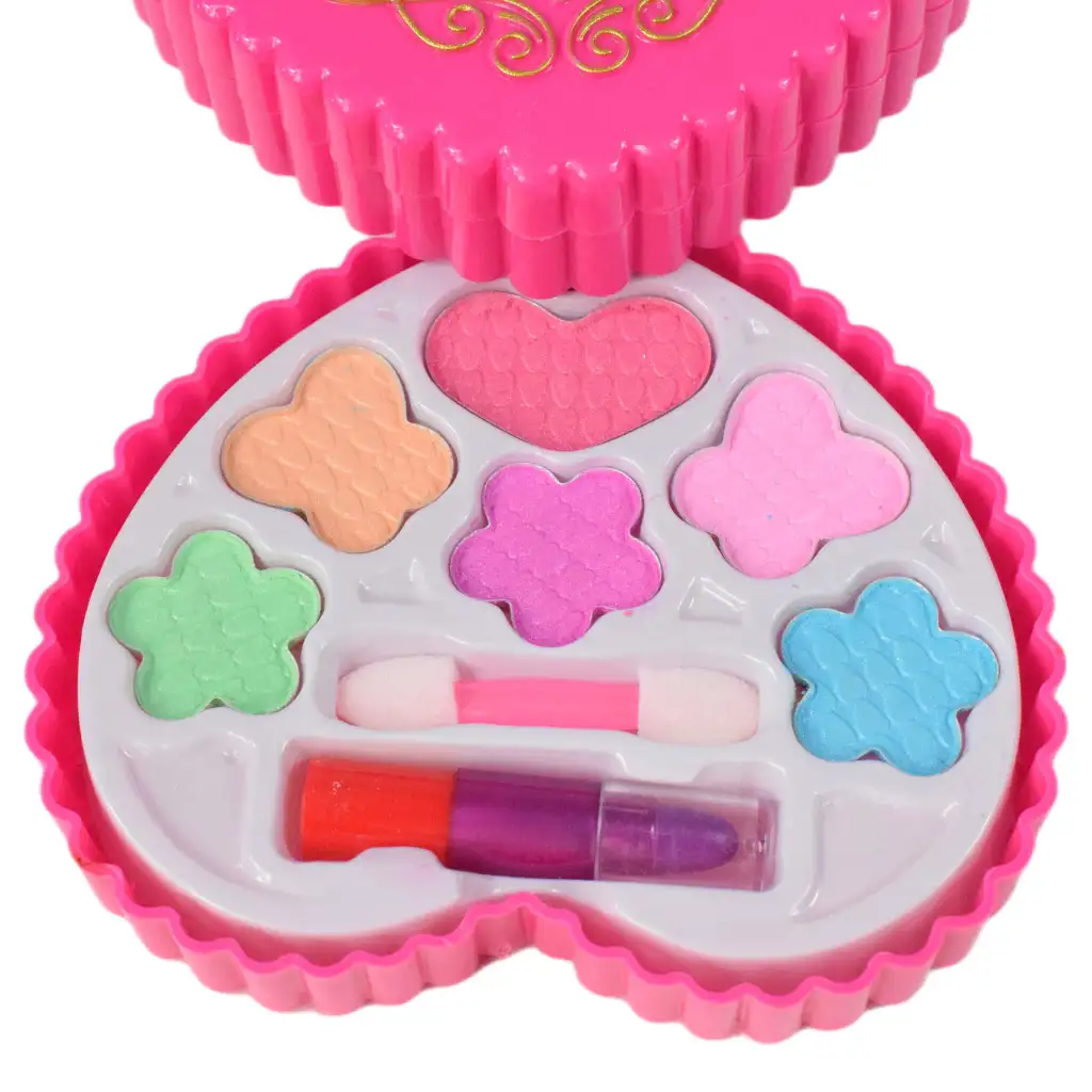 Tento úžasný mejkap set má mimoriadne široký výber farieb, takže vaša dcéra ľahko nájde ten správny odtieň, či už ide o očný tieň alebo lesk na pery. Súprava má dizajn v tvare srdca a je navrhnutá vo viacposchodovom prevedení. To znamená, že viac kozmetických produktov sa zmestí na menej miesta a tiež v rámci jednej palety. Vzrušujúca škála farieb a špeciálny dizajn umožňujú dievčatkám vyjadriť svoj vlastný štýl a kreativitu pri líčení. Môžete si vybrať svoje obľúbené odtiene a voľne experimentovať s mejkapom. Či už ide o každodenné hranie alebo špeciálne príležitosti, táto mejkap súprava v tvare srdca vždy vyčarí úsmev na tvári malých dievčat.