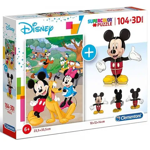 Disney: Mickey Mouse 104 dielne puzzle + 3D Mickey model - ClementoniDisney: Mickey Mouse 104 dielne puzzle + 3D Mickey model - Clementoni