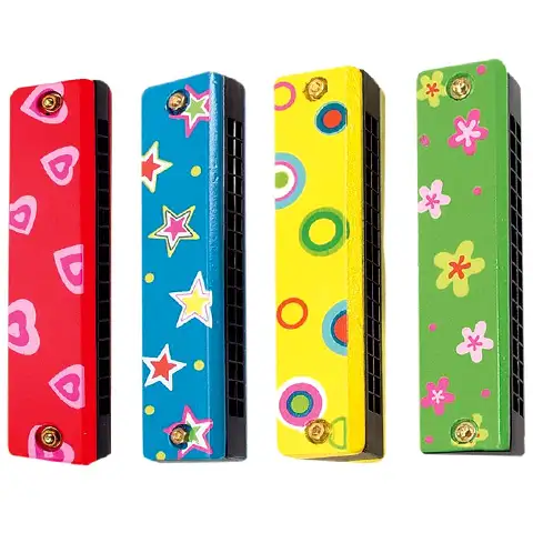 Atraktívny detský hudobný nástroj, ktorý poteší každého malého muzikanta a vďaka ktorému sa láska k hudbe rozvíja už od malička dieťaťa. Fúkacia harmonika vyrobená z dreva a zdobená pestrofarebnými motívmi. Dodávame v rôznych prevedeniach podľa aktuálnych skladových zásob.