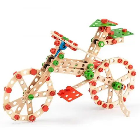Deti môžu vyrábať svoje obľúbené vozidlá rôznymi spôsobmi s touto súpravou skrutiek a podložiek z tvrdého a nárazuvzdorného plastu. Je k dispozícii všetko, čo môžu najmenší použiť na vytvorenie akéhokoľvek iného vozidla od helikoptéry až po bicykel. S touto špeciálnou stavebnicou z dreva a plastu sa počas stavania výrborne rozvíja obratnosť a tvorivé myslenie malých detí. Spájanie prvkov pomocou skrutiek je nielen vzrušujúca a kreatívna činnosť, ale tiež dokonale rozvíja technický zmysel detí.