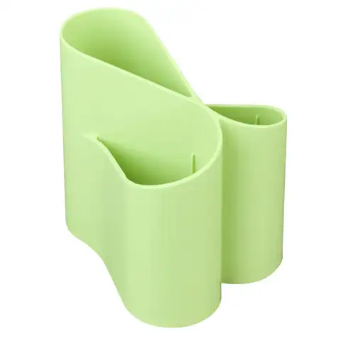 Nápadito navrhnutý stojan na písacie potreby bude estetickým doplnkom každého pracovného/písacieho stola. Ideálna pracovná pomôcka pre tých, ktorí preferujú moderný dizajn a okrúhle tvary. Tento originálny kúsok je vybavený 3 priehradkami, ktoré slúžia na triedené uloženie ceruziek, pier, fixiek a iných školských či kancelárskych pomôcok. Stojan je dodávaný bez náplne a je atraktívnej bledozelenej farby.