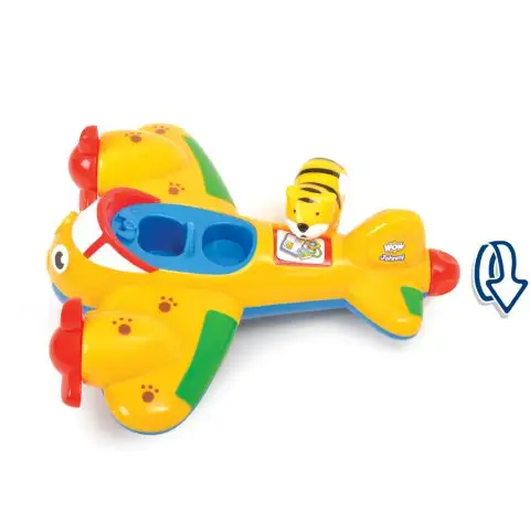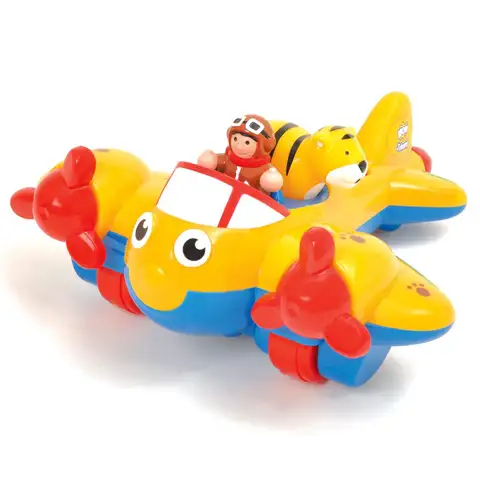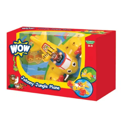 Predstavujeme vám lietadlo na prepravu zvierat. Volá sa Johnny a bezpečne prepraví zvieratá na požadované miesto. Lietadlo modro-žltej farby, s červenými kolieskami a vrtuľami práve teraz pripravuje vzlietnuť spolu s pilotom Montym, aby tigra menom Trisha prepravil z jednej zoologickej záhrady do druhej. Pomôž Montymu a Johnnymu pri preprave tigra! Táto pestrofarebná hračka vyrobená z vysoko-kvalitnej, nerozbitnej umelej hmoty, so zaoblenými hranami pre maximálnu bezpečnosť funguje na zotrvačník a vydáva zvuk motora ako ako pri skutočnej jazde . Lietadlo Johnny má kolieska a vrtule, ktoré sa otáčajú pri jazde. Zadná časť na prepravu nákladov ukrýva tajný priečinok.