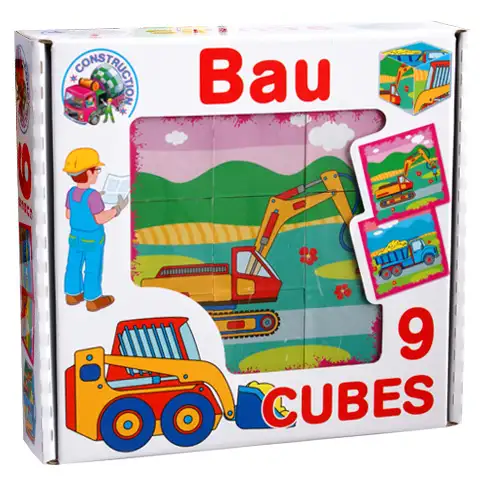 Z 9 malých kociek je možné vytvoriť 6 rôznych obrázkov, všetky v tematike "stavba"! Deti si zvolia obrázok, ktorý si prajú z kociek vyložiť, potom pretáčaním kociek sa snažia nájsť časť zvoleného obrázka a umiestnia ho na správne miesto. Vzniknutý konečný obrázok určite poteší každé malé dieťa.