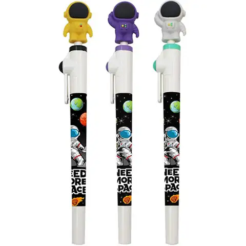 Väčšina malých chlapcov sa veľmi zaujíma o astronautov a kozmické lode, takže je celkom isté, že toto pero bude mať obrovský úspech, keďže na konci pera je unikátna figúrka malého kozmonauta. Vyberte si jedno z troch rôznych farebných pier, ktoré sa určite zapáči malým chlapcom a radi ich vložia do svojho peračníka alebo do zásuvky stola. Perá sa dajú použiť nielen na písanie, ale majú aj LED svetlo, takže perá môžu skvele slúžiť takmer v každej situácii.