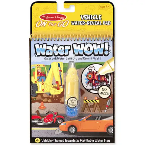 V tejto omaľovánke čakajú najskvelejšie vozidlá na to, aby boli zahalené vo veselých farbách tvojou prácou. Naplň špeciálnu fixku s vodou a maľovanie sa môže ihneď začínať tak, ako ešte nikdy predtým. Pozoruj, ako sa skvelé vozidlá premenia do rozmanitých farieb. Kreatívna hra, maľovanie vodou Melissa & Doug je založená na jednom čarovnom zošite, ktorých hárky je potrebné vymaľovať so špeciálnym perom, ktoré je súčasťou setu. Pero naplň vodou a jednoducho len s vodou vymaľuj hárky. Pozoruj, ako a vplyvom moku objavia nádherné farby. Po usušení farby zmiznú a celý proces sa môže opäť začínať.