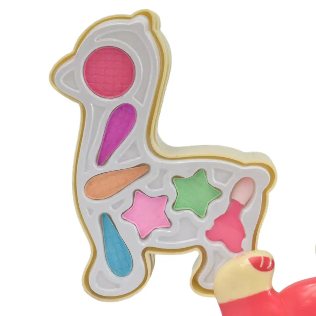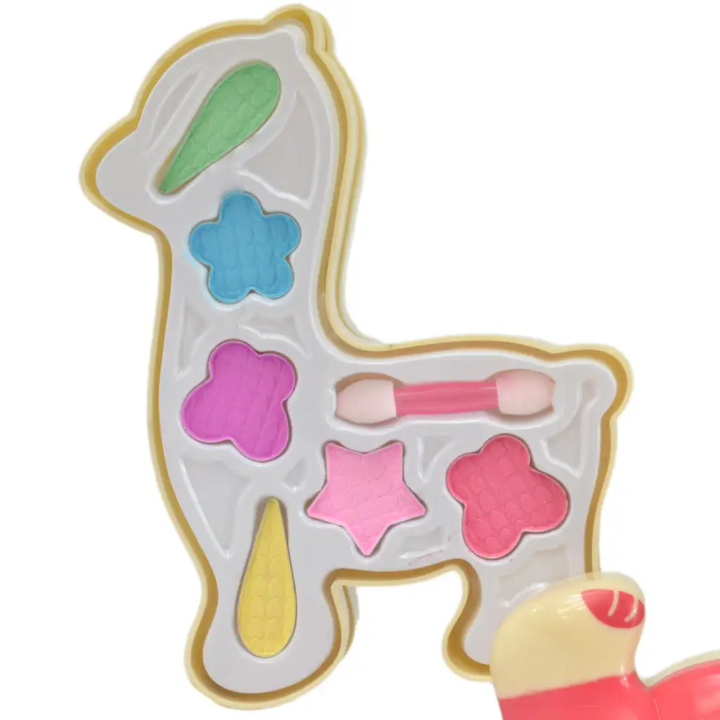 S touto mejkap paletkou v tvare lamy môžete vytvoriť špeciálnu a čarovnú ríšu hračiek, s pomocou ktorej sa dá vytvoriť každý deň pred zrkadlom nový a vzrušujúci mejkap. Táto očarujúca súprava obsahuje množstvo nástrojov, aby si vaše dieťa mohlo vytvoriť vlastnú súpravu módneho líčenia. V sete v tvare lamy sú všetky špeciálne líčidlá, ktoré sú ľahko dostupné a záleží na kreativite vášho dieťaťa, aké trendy líčenie vytvorí. Make-up sa ľahko zmýva a je vyrobený z materiálov vhodných pre deti, takže sa s ním môžu deti bezpečne hrať. Poschodový box vyrobený z plastu má praktický dizajn a možno ho ľahko otvoriť pre ľahký prístup k kozmetickým výrobkom. Nádobka má kompaktnú veľkosť, takže sa ľahko prenáša a zmestí sa do malej tašky, takže ju vaše dieťa môže kedykoľvek vybrať a za pár sekúnd sa nalíčiť, aby vždy vyzeralo perfektne.