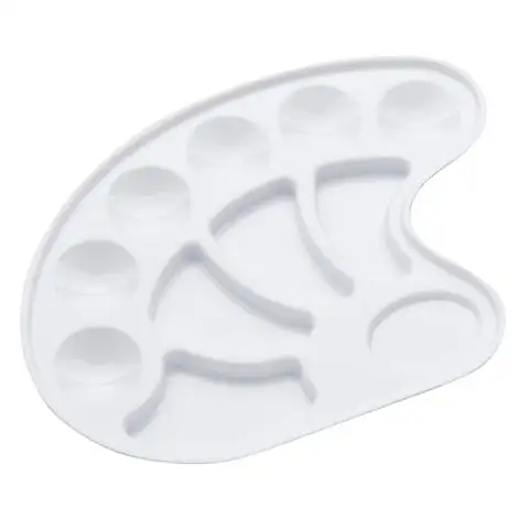 Z výbavičky výtvarníka - profíka by určite nemala chýbať táto praktická maliarska pomôcka. Maliarska paleta z pevného kvalitného plastu, vhodná na miešanie temperových, akrylových, atď farieb. Obsahuje vylisované priehlbiny pre miešanie jednotlivých farebných odtieňov. Maliarska paleta je bielej farby. Ak sa ju naučíš správne držať, bude perfektným pomocníkom pri maľovaní.