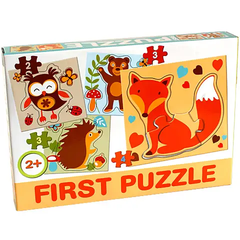 Puzzle pre najmenších s nádhernými jasnými farbami a lesnými zvieratkami. Malé deti si môžu poskladať obrázok sovy, medvedíka, ježka a líšky z niekoľkých dielikov. Jednoduché tvary uľahčujú hru pre najmenších. Puzzle je zábavná hra, ktorá rozvíja manuálnu a pozorovaciu schopnosť dieťaťa.