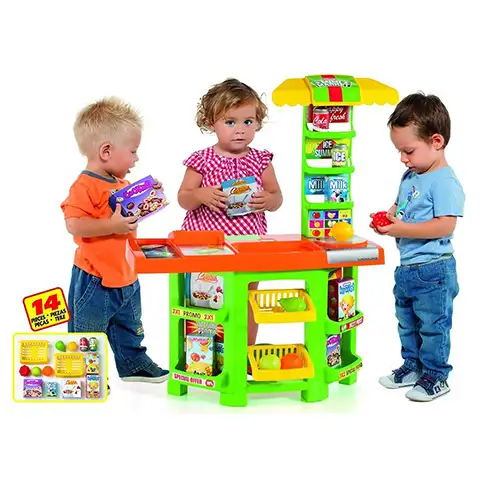 Deti radi vykonávajú také veci, čo videli od dospelých, takže samozrejme ani nakupovanie nie je výnimkou. Vďaka tejto súprave môžeme z detskej izby za okamih vyčariť obchod . Súprava samozrejme obsahuje nielen pult, ale viac ako tucet produktov, s ktorými sa dá naplniť pult, čo potom deti môžu použiť počas hry. Štrnásť dielny set poskytuje deťom veľa výnimočných zábavných chvíľ a naučí deťom proces nakupovania.