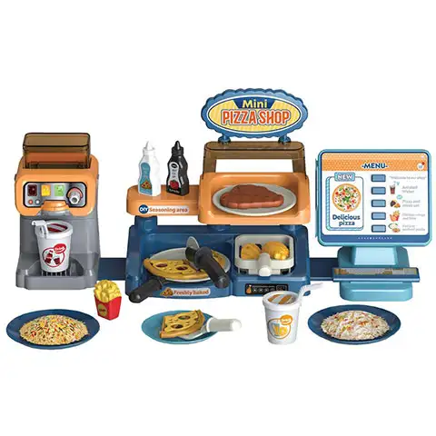 Reštaurácie s rýchlym občerstvením sú neuveriteľné obľúbené, pretože je tu možné zakúpiť nielen hamburgery ale rôzne jedlá. S týmto skvelým hracím setom sa detskej izby sa môže stať cool pizzeria. Sada obsahuje super malý pult, ktorý vyzerá rovnako ako v reštauráciách s rýchlym občerstvením, a navyše vďaka svetelným, zvukovým efektom a vlastnej elektronike bude hra ešte realistickejšia. Bez chutných jedál samozrejme neexistuje žiadna reštaurácia s rýchlym občerstvením, takže aj v tejto sade je veľa rôznych jedál, ktoré vyzerajú skutočne lahodne.