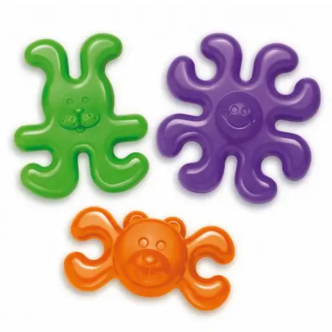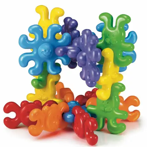 Súprava sa skladá z farebných dielikov v tvare chobotničiek, zajačikov a medvedíkov pekne zaoblenými okrajmi, ktoré sú vhodné na hranie alebo ich môžu detičky rôznymi spôsobmi kombinovať a skladať. Z dielikov je možné poskladať reťaz alebo iné konštrukcie, rozobrať a opäť skladať. Všetko vyrobené z umývateľného zdraviu nezávadného plastu špičkovej kvality.