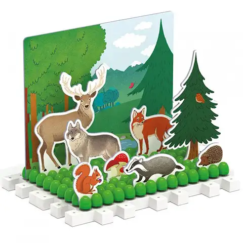 Táto mozaiková hra na rozvoj schopností ukrýva pre deti mnoho nových možností hry, na aké boli doteraz zvyknuté. Hra je založená na známej dierkavej doske a zelených bodkách, ktoré symbolizujú trávnaté polia alebo poľnohospodárske pôdy. Do medzier medzi bodkami je možné ľahko vložiť pozadia a zvieratá v súprave, akoby sa len voľne túlali po trávnatej ploche. Séria Quercetti Montessori obsahuje tvorivé a budovanie zručností, vzdelávacie hry inšpirované prácou slávnej učiteľky Márie Montessoriovej, vytváranie hier a nástrojov, ktoré skutočne majú vývojový vplyv na zručnosti detí. Sada je dodávaná v biologicky rozložiteľnom balení.
