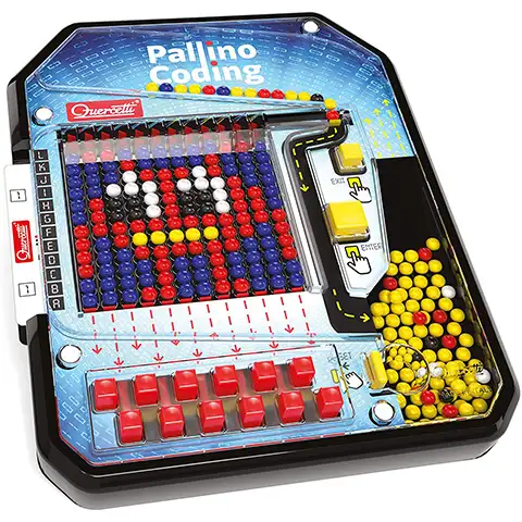 Pallino kódovanie alebo programovanie mozaiky je skutočne zaujímavé a vzrušujúce pre deti, hlavne ak balík Quercetti umožňuje aj získať zážitky z úspechu. V hre je tabuľa, kde si deti môžu spravovať farebné gule, ktoré zodpovedajú kódovaniu. Súprava samozrejme obsahuje aj kódové karty, ktoré vám na prvý pohľad nezobrazujú správne riešenie. Ak však deti uhádne logiku fungovania hry, gule správnej farby dopadnú na správne miesto a výsledný obrázok sa bude zhodovať s tým, čo je vidieť na zadnej strane kódovej karty.