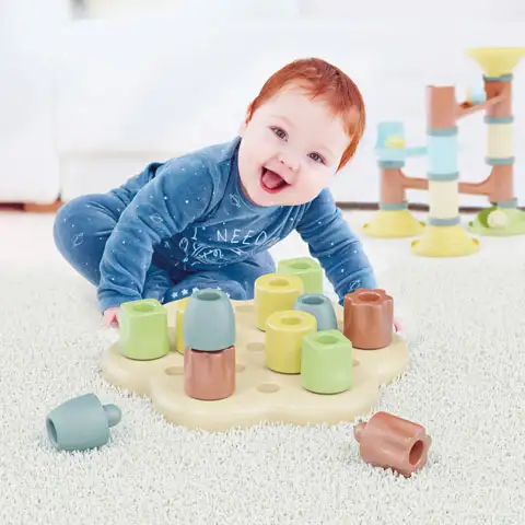 Vďaka tejto súprave Chunky bodky je táto super hračka dostupná pre deti od jedného roka. Farebné bodky ľahko priťahujú záujem malých detí a vzhľadom na ich obrovskú veľkosť sa netreba báť, že ich deti prehltnú, avšak umiestnenie bodiek na deravú tabuľu výrazne zlepší jemnú motoriku a koordináciu rúk-očí. Hračka je navyše vyrobená výlučne z ekologických materiálov, takže sa s ňou malé deti môžu bezpečne hrať.