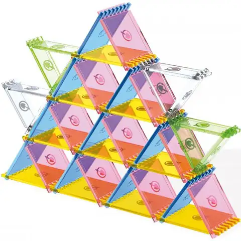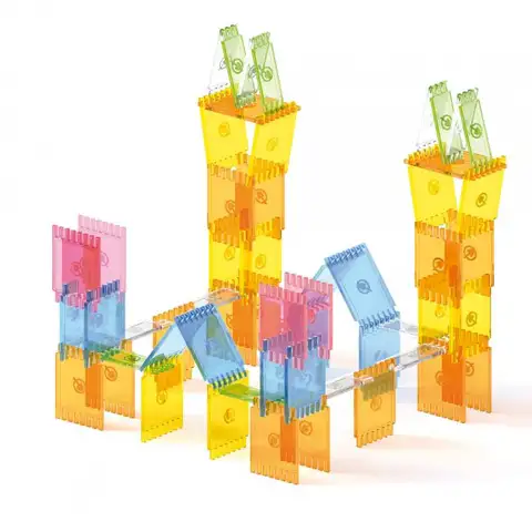 Dostavila sa k vám klasická hra kartového hradu v novej verzii od výrobcu Quarcetti. V tejto hre nahrádzajú karty špeciálne farebné plastické hárky, ktoré boli tak navrhnuté, aby dokonale zapadali do seba. Pomocou týchto prvkov môžete vybudovať celý svet fantastických trojrozmerných komplexov, ktoré sa nikdy nezrútia. Ak sa vám raz podarilo zostaviť budovy, tak ju môžete kamkoľvek zobrať bez toho, aby sa rozpadla. Alebo ak vás už budova nebaví, tak ju môžete rozobrať na malé kúsky a postaviť novú budovu. Hranica kreativity pri tejto hre je nebo s hviezdami!
