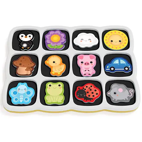Toto obojstranné puzzle je skvelou voľbou pre malé deti, pretože na jednej strane tabule je tucet roztomilých obrazov, čo deti musia poznať a umiestniť vhodné puzzle dieliky na tabuľu. Jednotlivé prvky sú dosť hrubé, mäkké a vďaka magnetu na zadnej strane perfektne zapadajú na vhodné miesto. Na druhej strane tabule je farebná krajinka, na ktorú deti môžu ľubovoľne umiestniť dieliky, takto môžu vytvoriť úžasný príbeh, čoho scény môžu byť voľne kombinované.