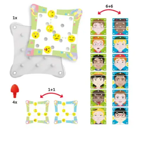 Puzzle Quercetti Vytvor si tvár! je vzrušujúca a kreatívna hračka, ktorá rozvíja detskú predstavivosť a zručnosť. Počas hry môžu účastníci na špeciálnej tabuli zostaviť vtipné, jedinečné tváre z plastových dielov rôznych farieb a tvarov. Toto puzzle je dokonalý nástroj na učenie sa o osobnosti, emóciách a črtách tváre pre malé deti, zatiaľ čo deti sa učia a zároveň sa zabávajú. Hračka sa ľahko používa, vtipné emotikony vám pomôžu umiestniť obrázky na správne miesto a zostaviť tváre. Balenie obsahuje tabuľu, 4 červené bodky a tabule potrebné na zostavenie 12 tvárových tabúľ.