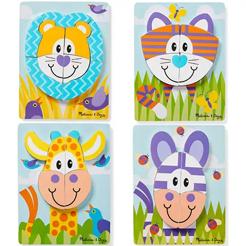 Toto puzzle sa skladá z obrovských drevených puzzle dielikov je skvelou voľbou pre najmenších, pretože živé farby a zvieracie motívy určite pritiahnu pozornosť tých najmenších. Okraje sesťdielnej žirafy, tigra a zebry, rovnako ako deväťdielnej skladačky leva sú zaoblené, jemne spracované tak, aby boli úplne bezpečné pre najmenších. Táto drevená logická hra rozvíja jemné motorické schopnosti, zručnosti pri riešení problémov a je vhodná na objavovanie vzorov a farieb. Výrobky „My First Play“ od Melissa & Doug sa vyznačujú žiarivými farbami, určitými vzormi a dômyselným dizajnom, ktorý zvyšuje schopnosti vášho dieťaťa a zároveň oživuje fantáziu už od začiatku!