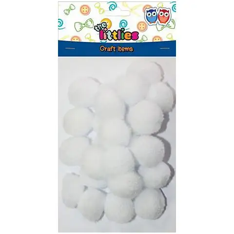 Malé detičky potrebujú len trochu kreativity a lepidlo, aby počas tvorivej práce vyrobili z týchto snehobielych pomponov niečo skutočne veľkolepé. Deti počas kreatívnej hre môžu využiť svoju fantáziu, takže proces tvorby bude nielen mimoriadne zábavný, ale konečným výsledkom môže byť veľkolepá dekorácia v izbe. Táto súprava obsahuje 60 kusov bielych pomponov.